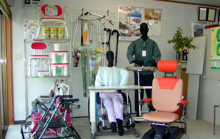 入浴補助用具や腰掛便座など、介護保険の給付対象となる特定福祉用具、福祉用具や自助具などの販売も行っています。